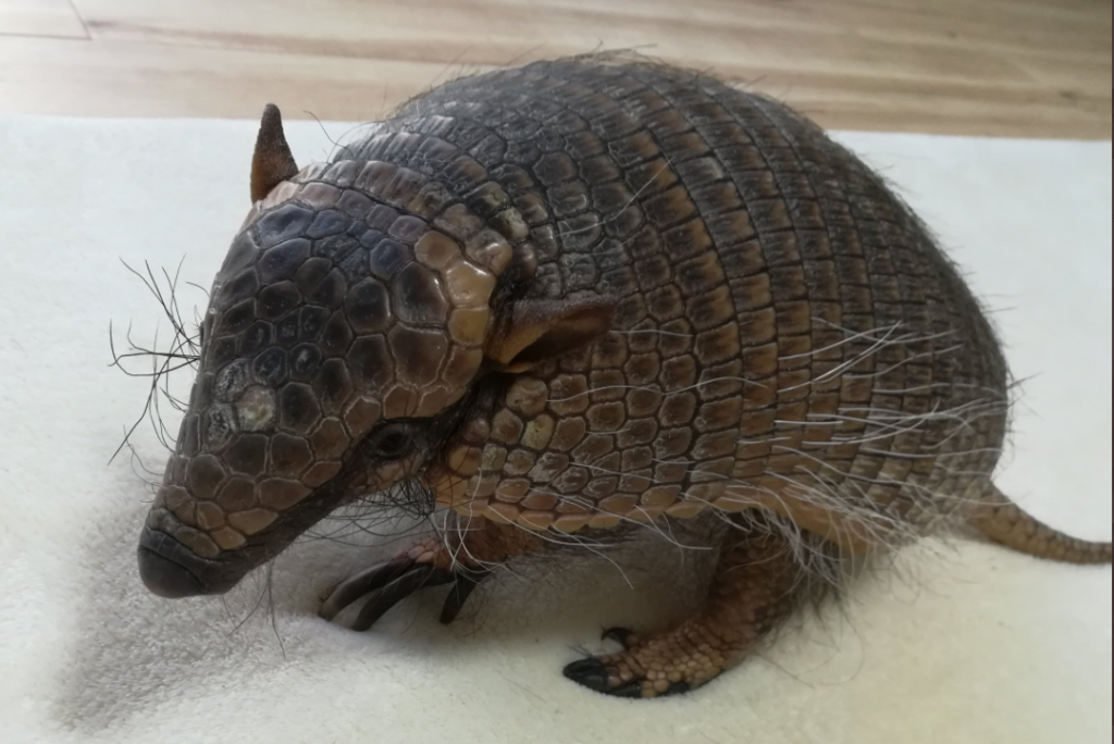哺乳類、被甲目、アルマジロ科。その中でも、最大種は体調1mにもなり、最小種はたったの10cm!夜行性、硬い甲羅、雑食、睡眠時間は1日18時間と長く、前足の鋭い爪で穴を掘る習性。